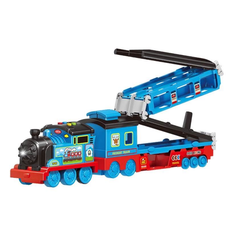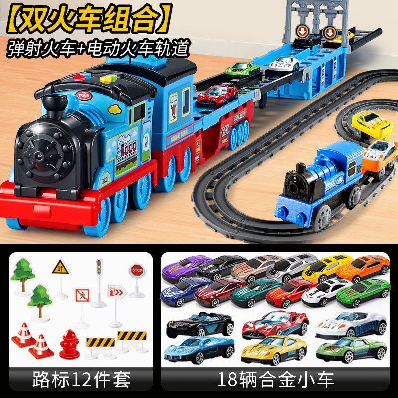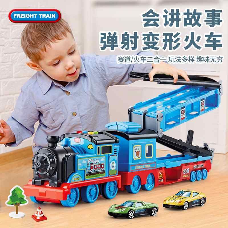 变形轨道弹射火车玩具车轨道滑行儿童男孩收纳合金汽车3岁货车4-5