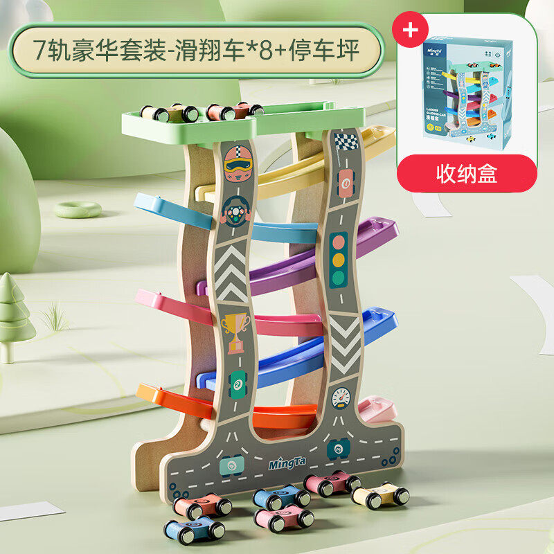 铭塔儿童滑梯滑i翔小车赛车宝宝竞速轨道车幼儿多层火车玩具车男