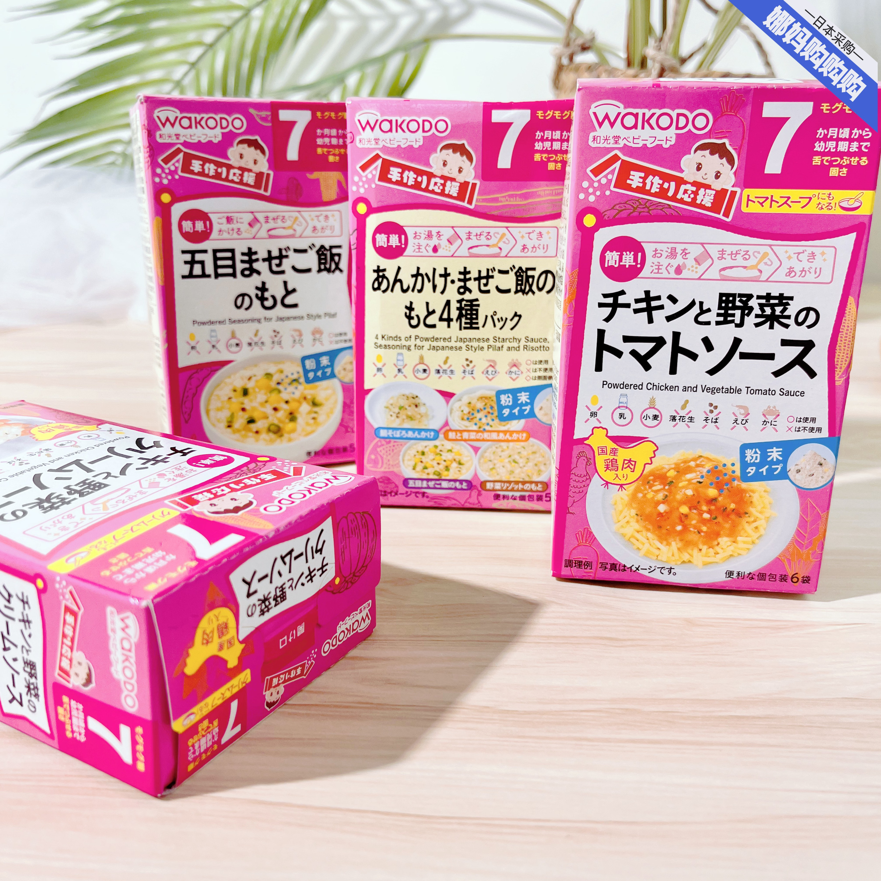 日本直邮和光堂宝宝蔬菜米糊高汤粉营养健康5月+wakodo盒装辅食粉