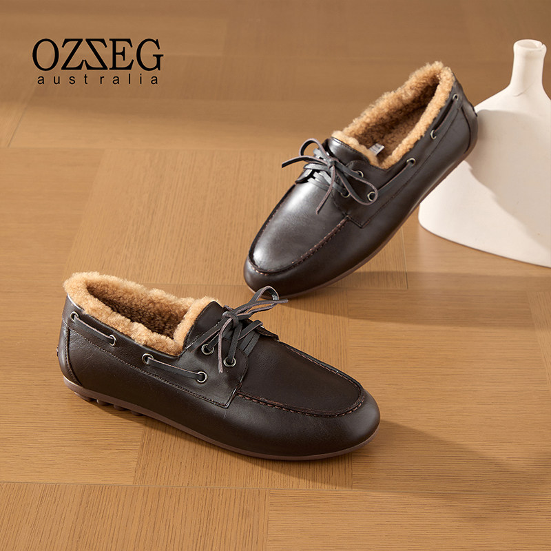 OZZEG2025新款kelly扣舒适保暖豆豆鞋女羊皮毛一体乐福单鞋25D26