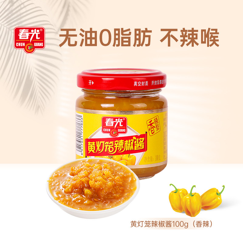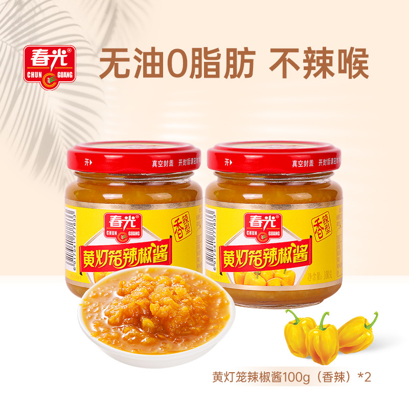 春光食品 海南特产 调味 黄灯笼辣椒酱 香辣型 100g*2瓶 美味鲜爽