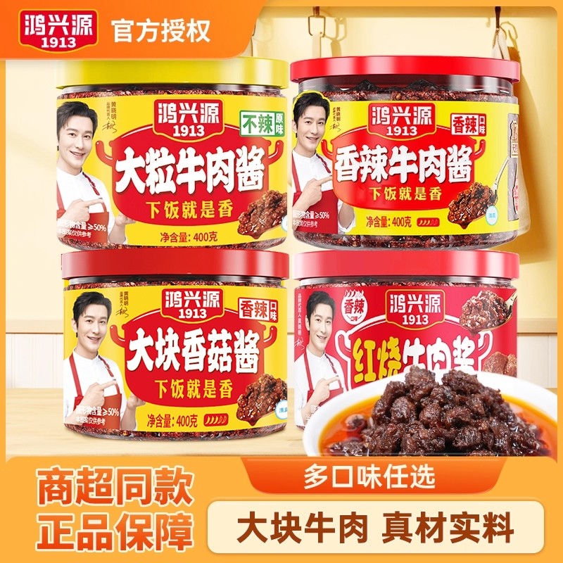 鸿兴源香辣牛肉酱下饭拌面佐餐酱大块牛肉不辣夹馍酱400g辣椒酱