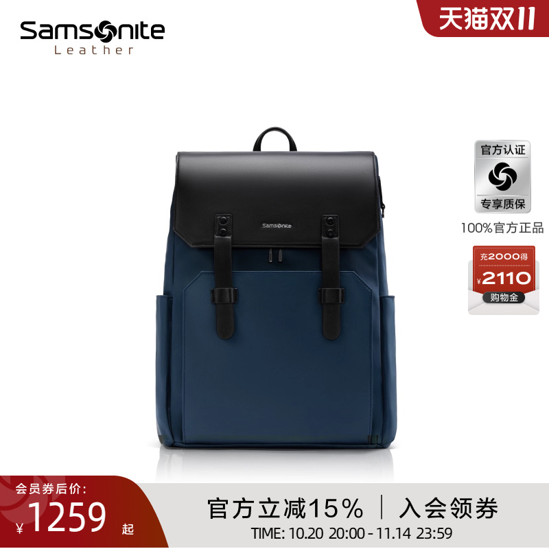 Samsonite新秀丽双肩包新款牛皮革轻奢背包高端商务书包电脑包TM3