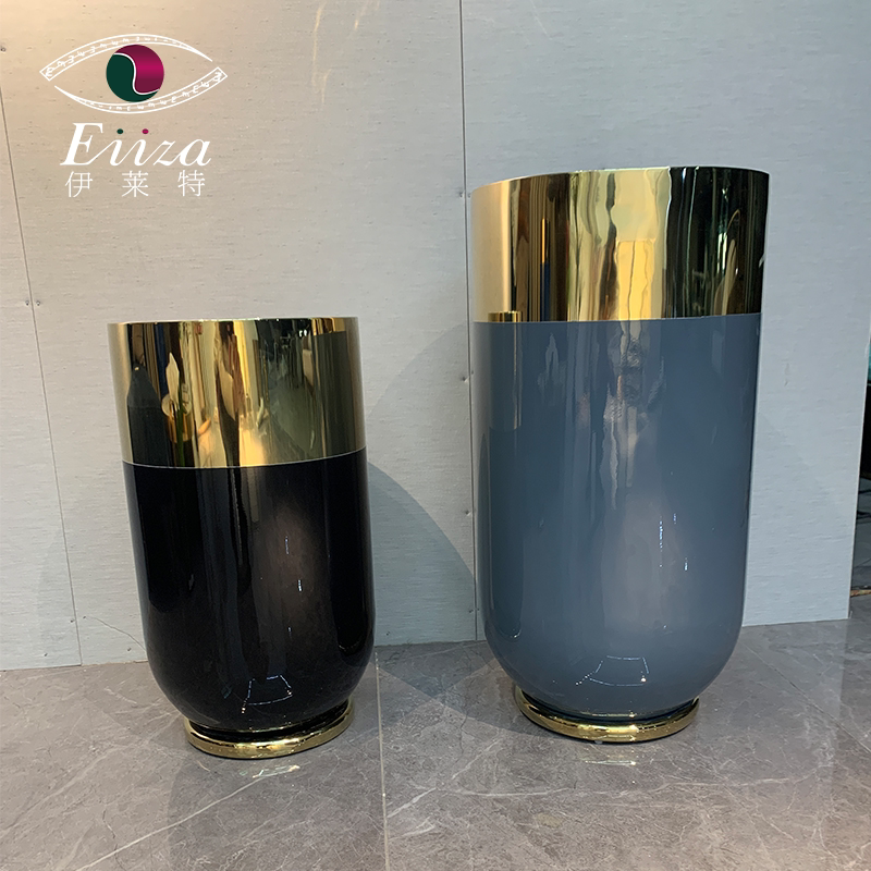 现代简约玻璃钢树脂花盆高档别墅摆件装饰品培土绿植花器花架组合