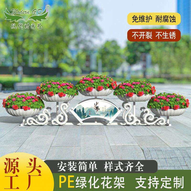 户外大型铁艺花架PP花盆花器市政广场落地式绿化工程花架景观造型