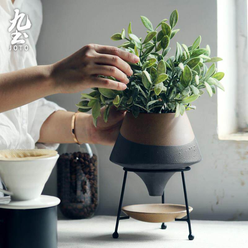 九土创意多肉陶瓷铁艺花盆北欧花器盆栽支铁架客厅摆件植物花盆架