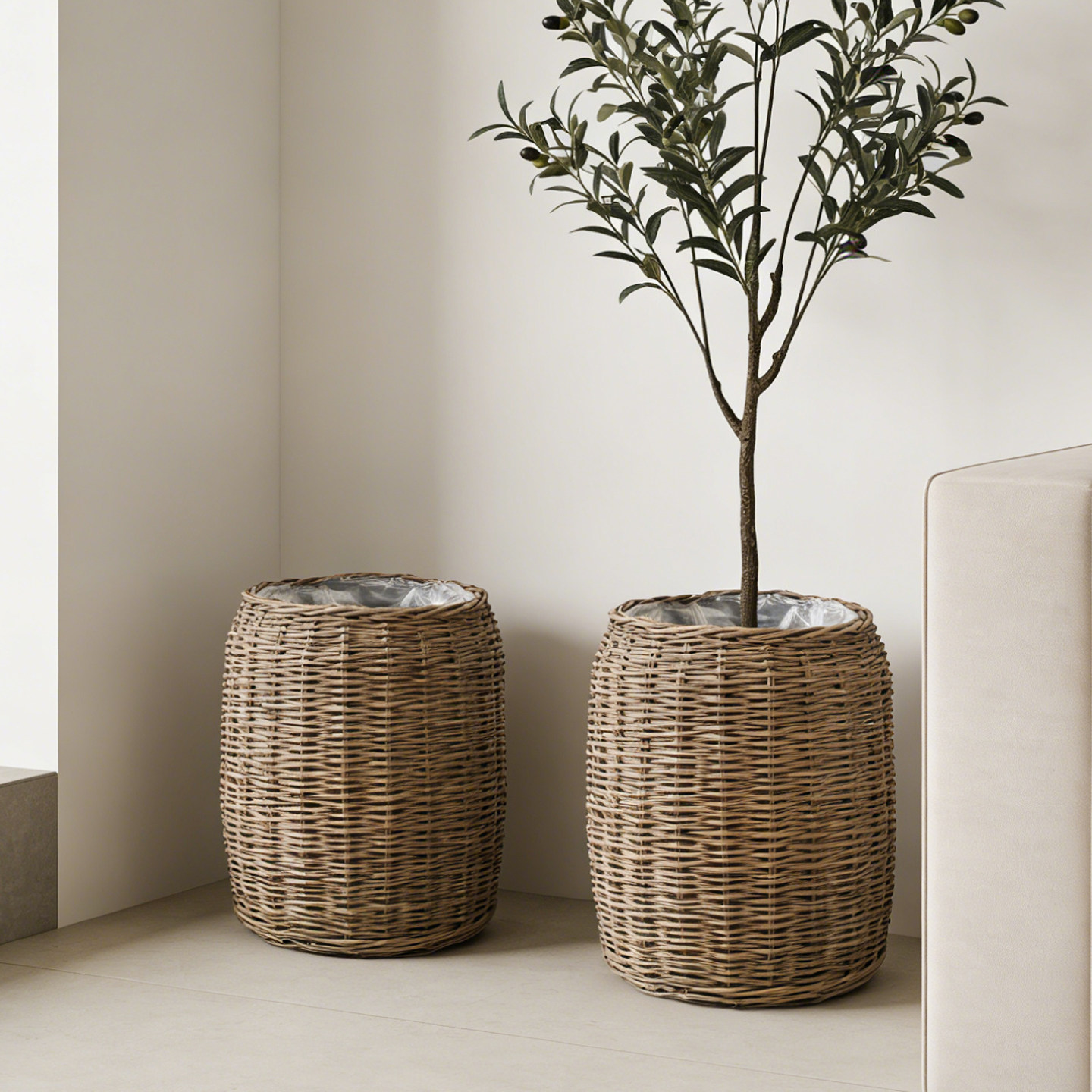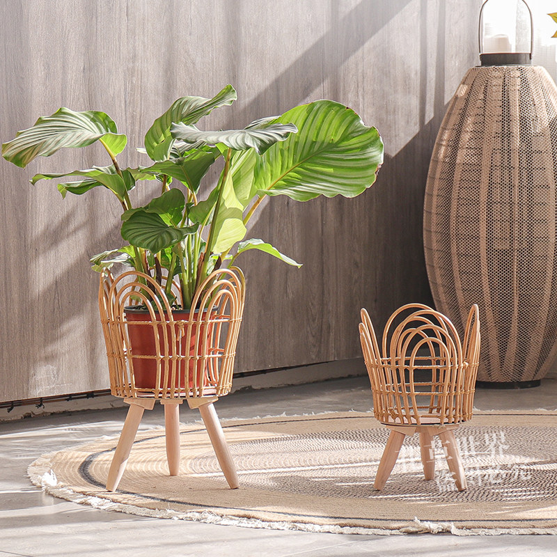 北欧风藤编落地花篮塑藤花盆花架小盆栽绿植套盆装饰花器家居客厅