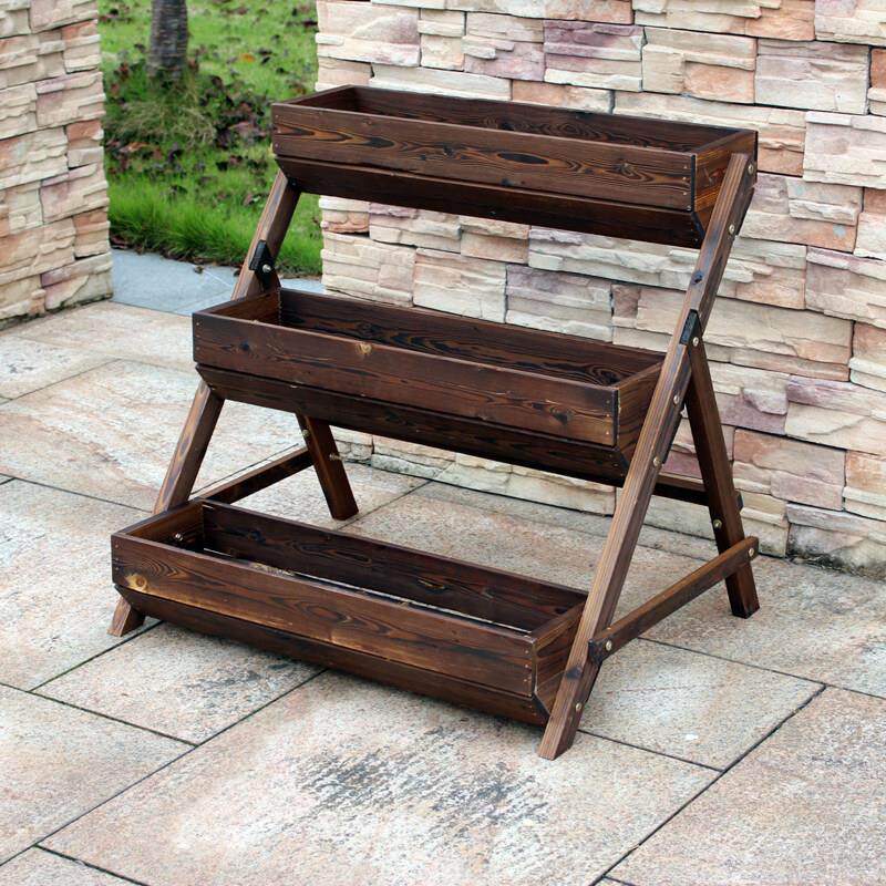 碳化实木多层阶梯花台阳台木制花架庭院花架肉肉花盆架子植物花器
