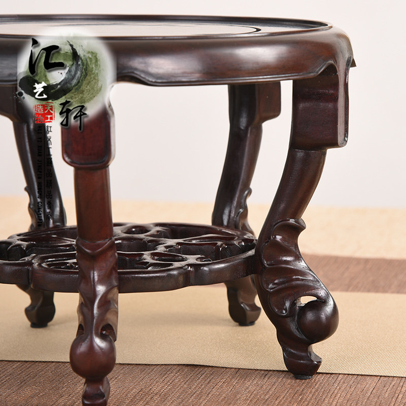 实木圆形花瓶鱼缸底托托架花盆盆景展示花器花道铜器摆件木质底座