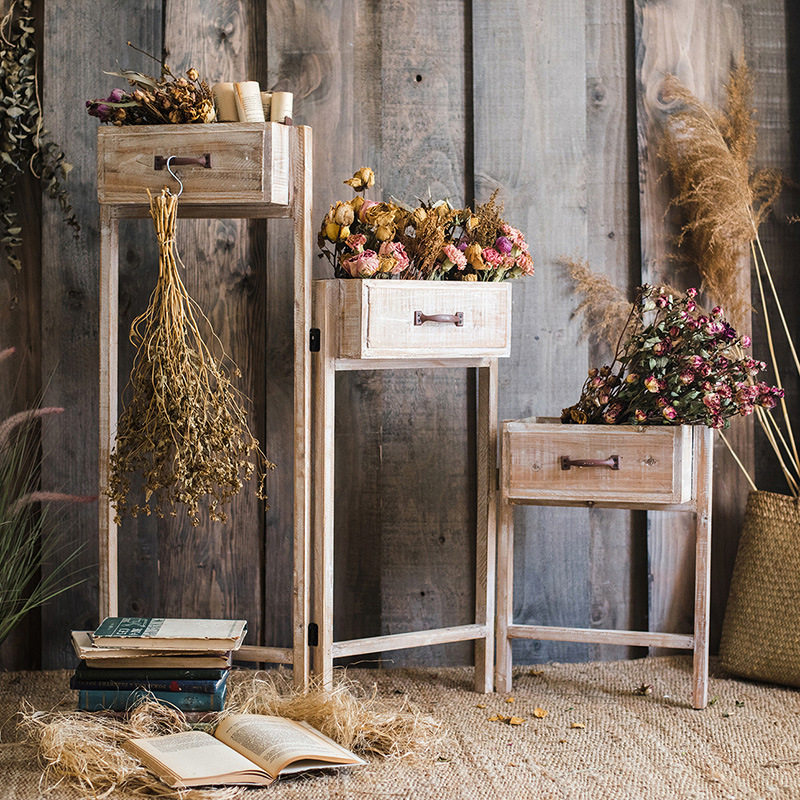 侘寂风木质花器家用装饰花架实木花盆民宿酒店高级感大型落地摆件