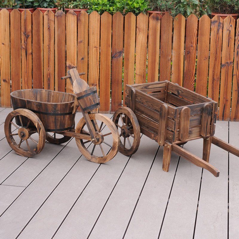 花车木制花架花桶三轮车小车碳化防腐木花盆木桶摄影道具多肉花器