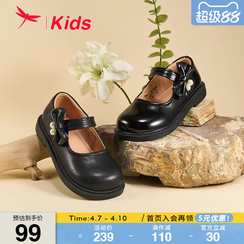 红蜻蜓女童鞋子儿童黑色小皮鞋公主软底单鞋2026新款女孩乐福春夏