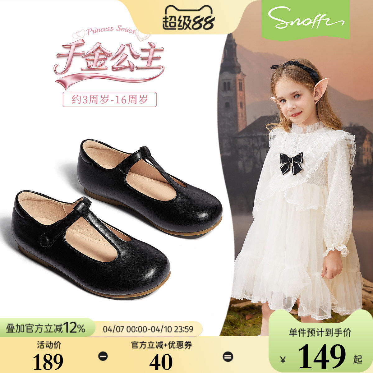 Snoffy斯纳菲女童皮鞋2026春季新款宝宝洋气软底公主鞋黑色单鞋子