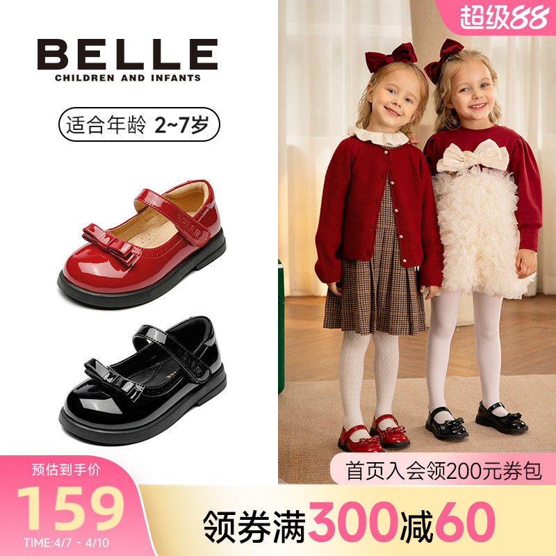 百丽童鞋女童黑色皮鞋春季2026新款软底鞋子小女孩公主鞋宝宝单鞋