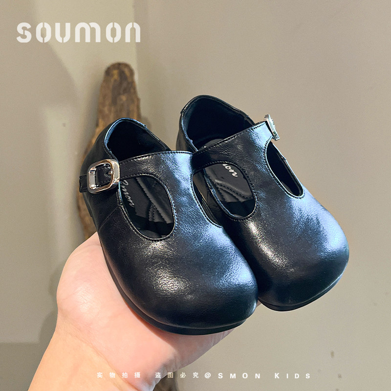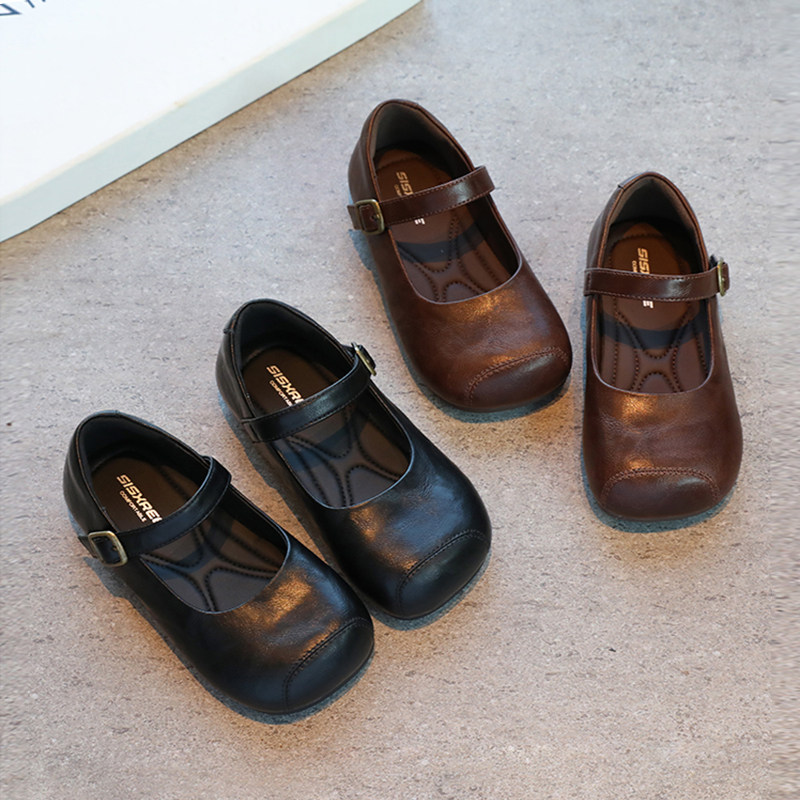 真皮女童皮鞋复古风小女孩玛丽珍鞋女宝宝平底浅口单鞋黑色演出鞋