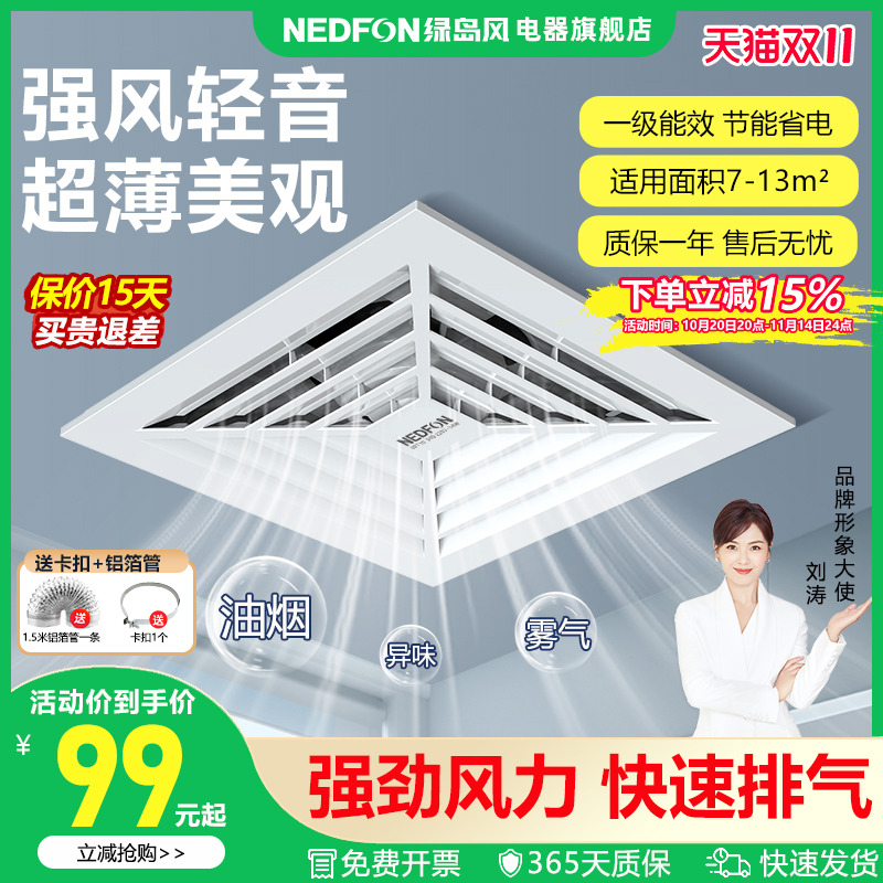 绿岛风吸顶式换气扇厨房集成吊顶管道排气扇卫生间强力静排风扇音