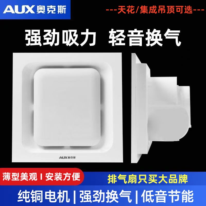 奥克斯天花管道排气扇厨房吸顶式排风扇家用卫生间强力静音换气扇