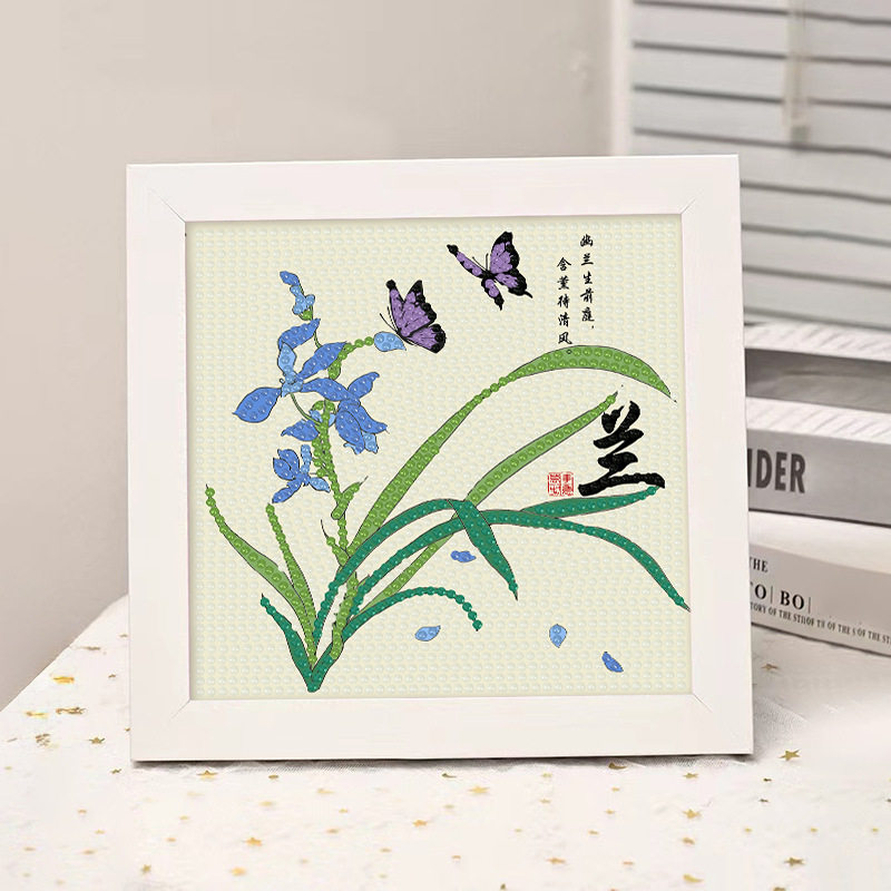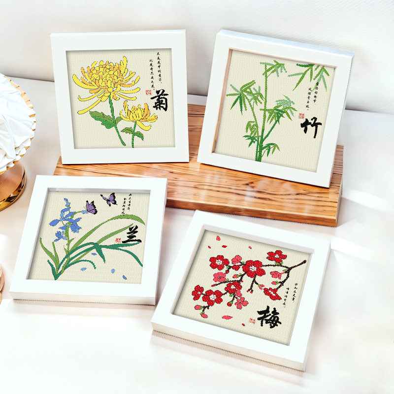 梅兰竹菊钻石画DIY学生幼儿园手工钻石贴画文字点砖石画益智礼物