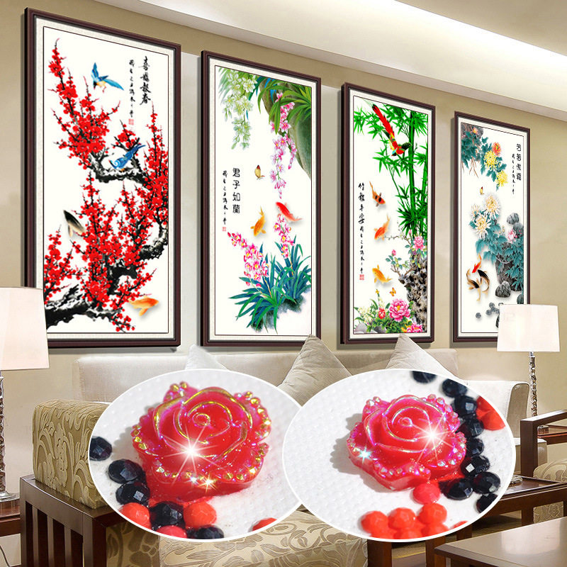5d钻石画十字绣梅兰竹菊四联画大幅新款客厅卧室贴钻点钻挂画包邮