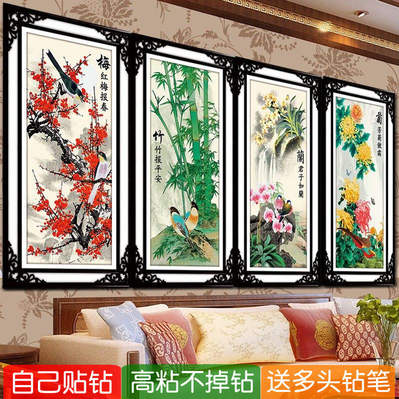 5d梅兰竹菊钻石贴画2026新款客厅手工diy砖石秀十字绣四联点钻画