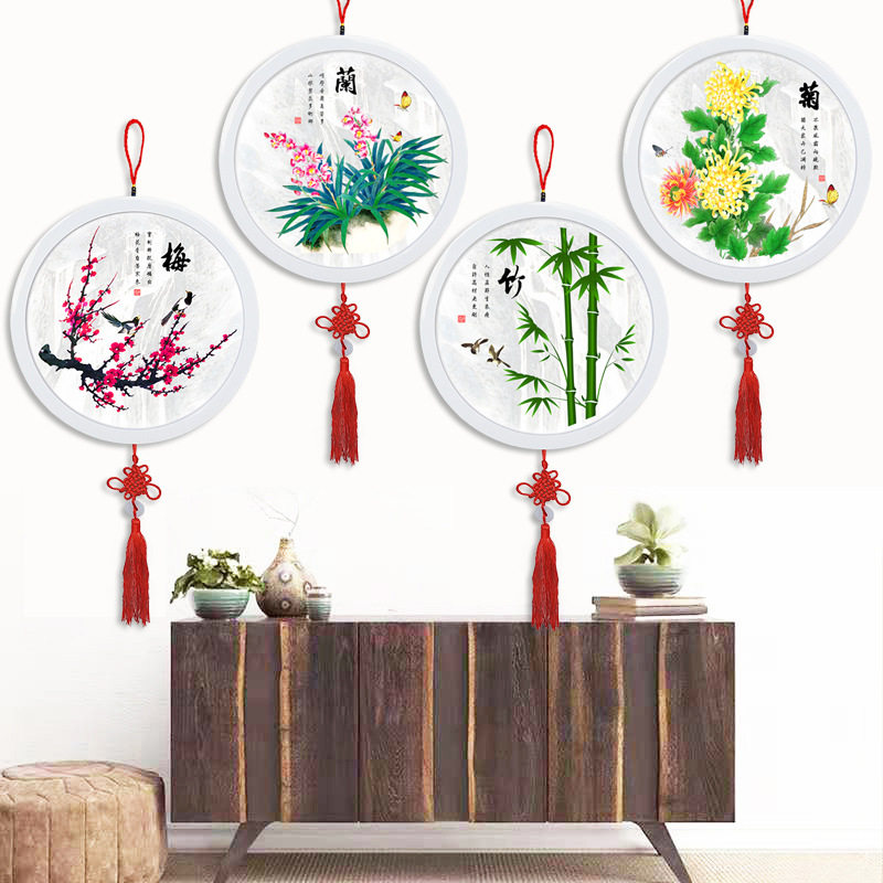 带框5d中国风梅兰竹菊钻石画客厅小幅四联画圆形点钻十字绣粘贴画