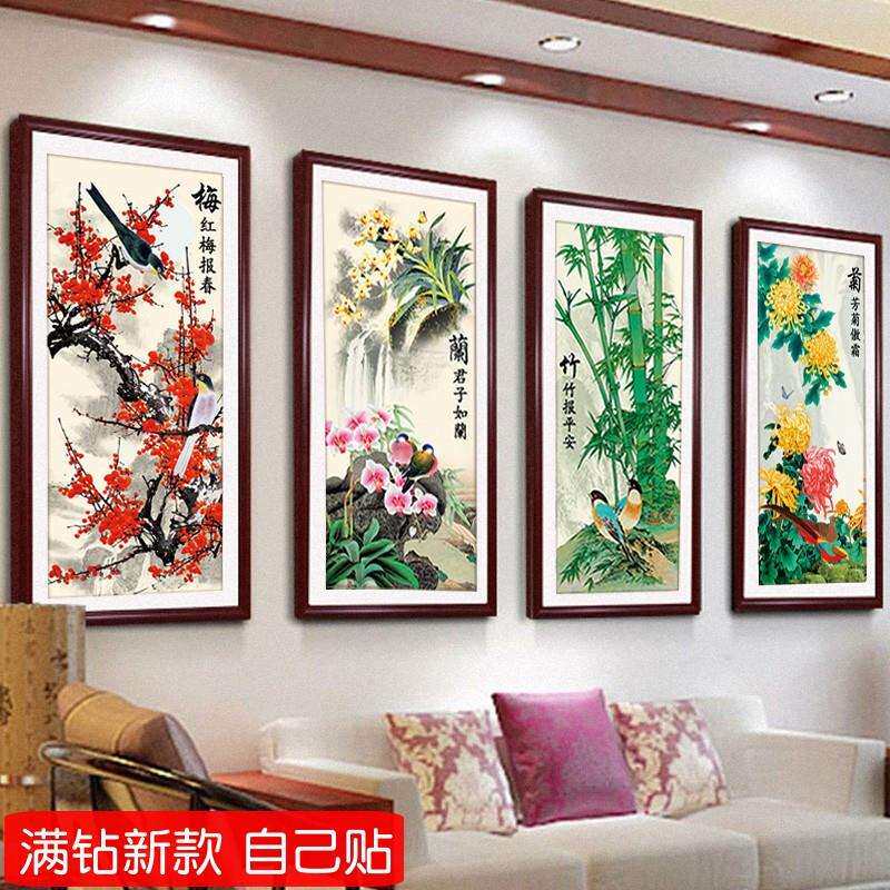 钻石画十字绣四君子梅兰竹菊新款小幅客厅免表框带框手工点钻石绣