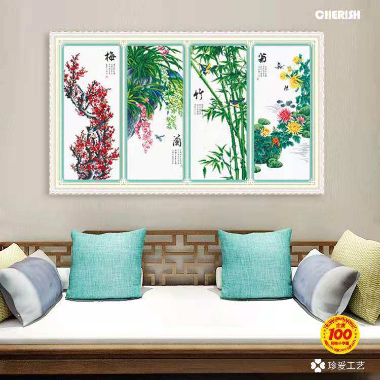 珍爱工艺爱络爱优微新款十字绣钻石绣梅兰竹菊客厅书房纯棉手工制