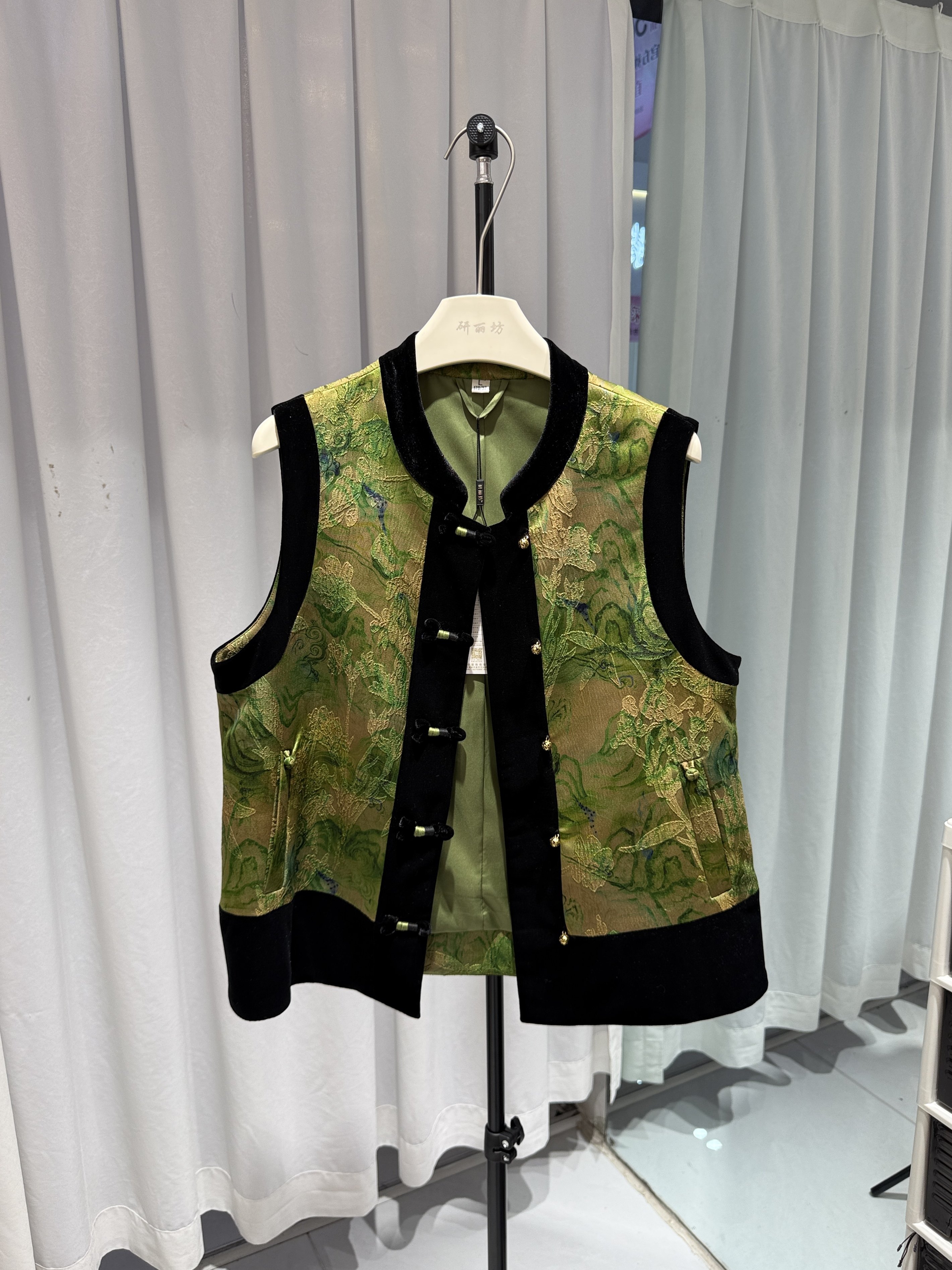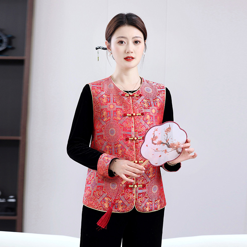 (商场同款专柜发货)中年妈妈新中式改良唐装大码马甲复古盘扣女