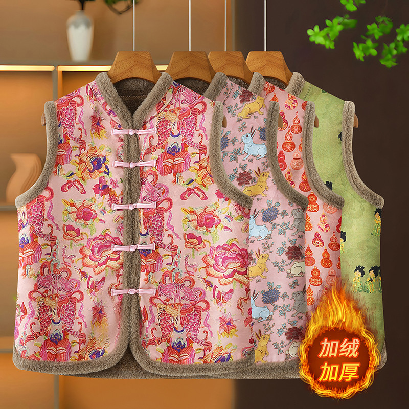 新中式妈妈装女士马夹秋冬保暖坎肩中年女装加绒加厚唐装国风马甲