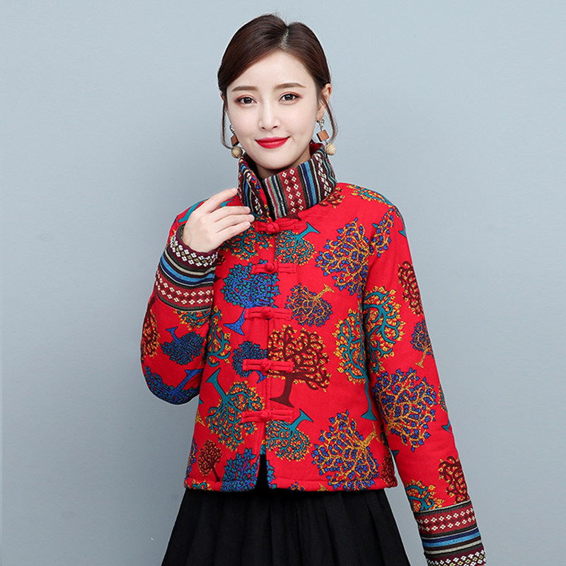 中年妈妈秋冬复古唐装小棉衣开衫外套女士盘扣加绒棉服加厚花棉袄