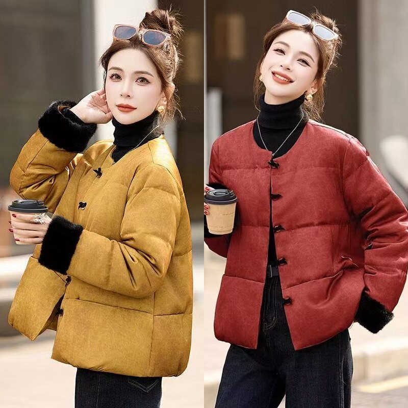 2025新款中年妈妈装新中式国风盘扣棉服女短款秋冬保暖唐装外套女