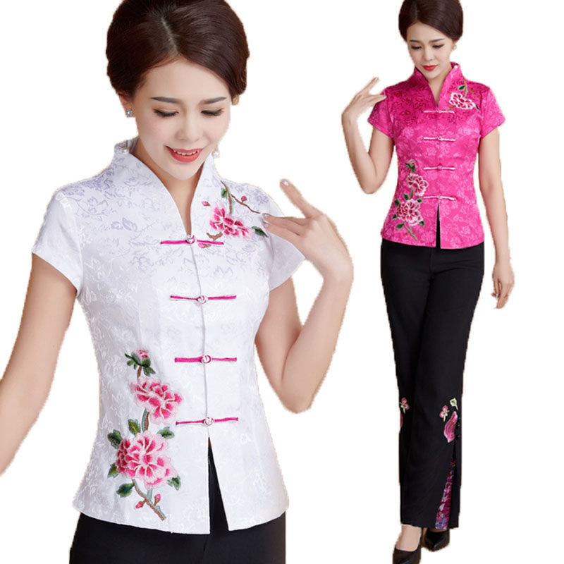 中年女唐装夏装短袖套装汉服刺绣中国风复古民族风棉麻上衣妈妈装