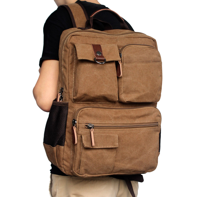 工装书包旅行包背包男生时尚复古双肩包百搭帆布校园学院风女包潮