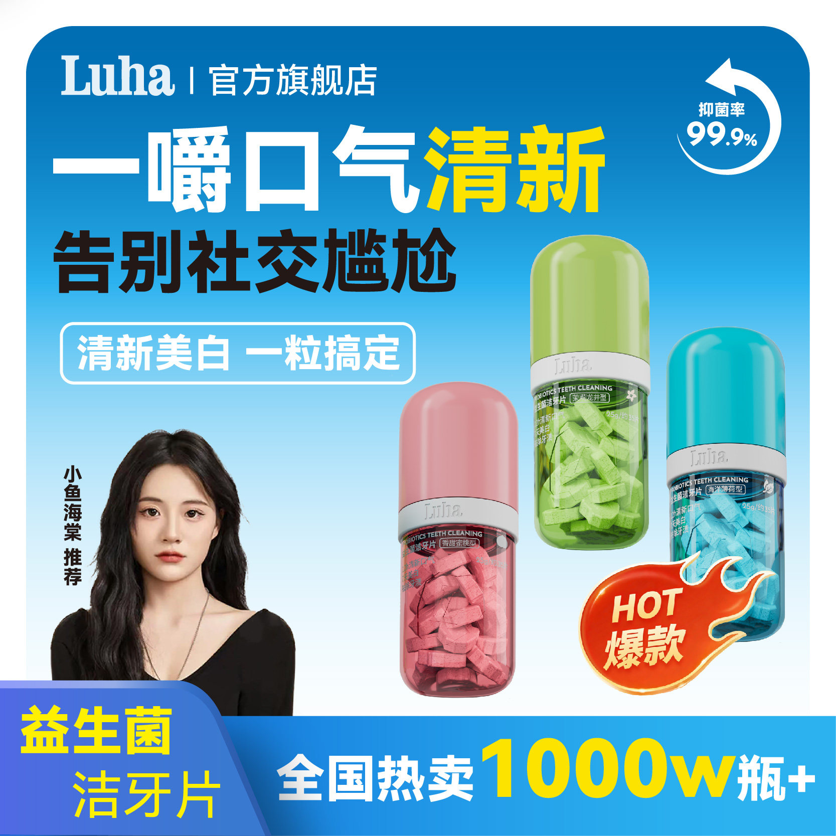 LUHA益生菌免刷牙膏清新口气美白牙齿去黄除臭清洁口腔固体洁牙片