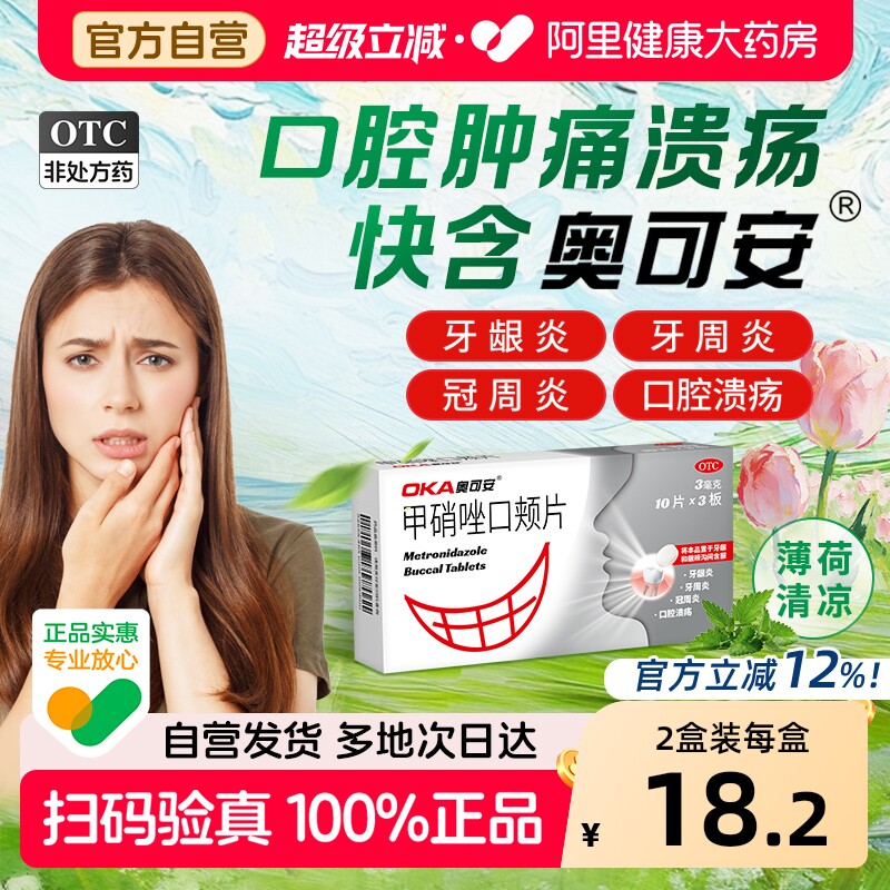 奥可安甲硝唑口颊片30片冠周炎口腔溃疡智齿消炎药牙周炎牙疼牙龈