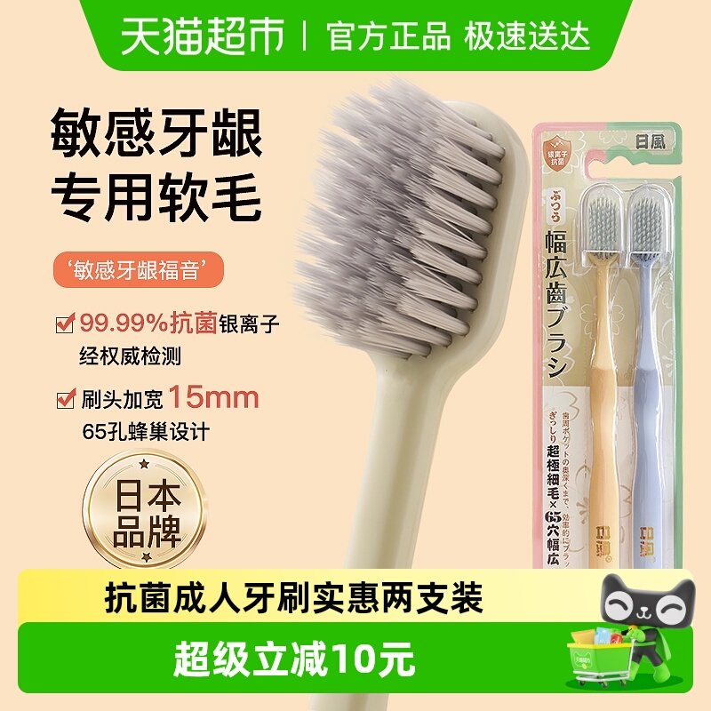 LION狮王细齿洁宽薄宽头软毛牙刷茶抗敏家庭装懒人装口腔清洁