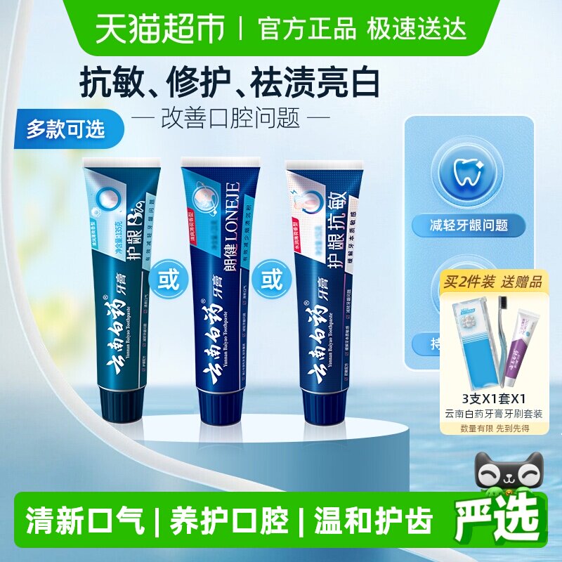 云南白药牙膏护龈清新口气成人祛黄亮白牙齿牙刷口腔套装官方正品
