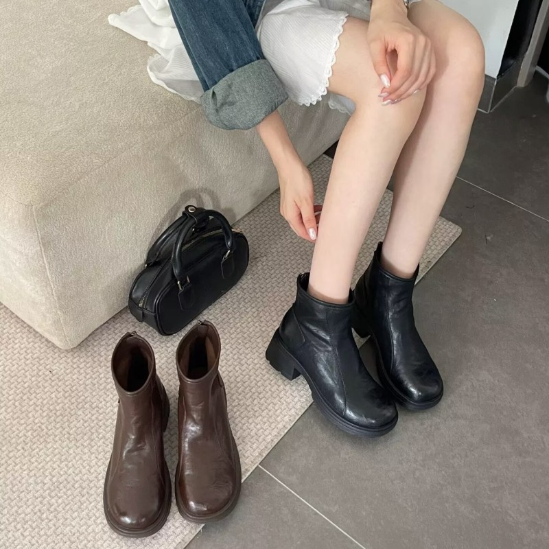 英伦风复古粗跟马丁靴女2025秋冬款后拉链中跟圆头切尔西短靴