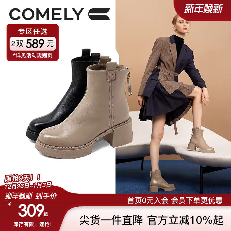 cece coup 甜酷女孩!11/13 新品 25FW 复古圆头拉链粗跟短靴女