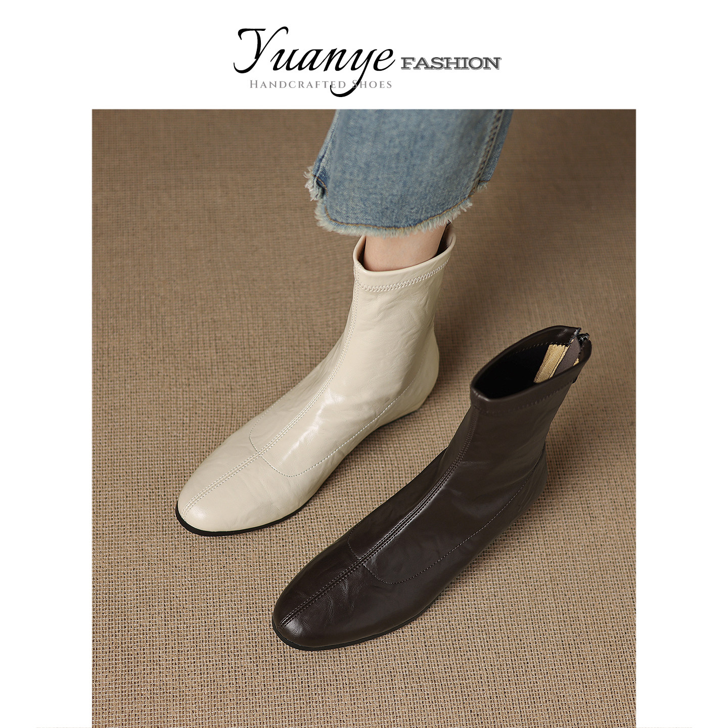 - 拉链平底短靴