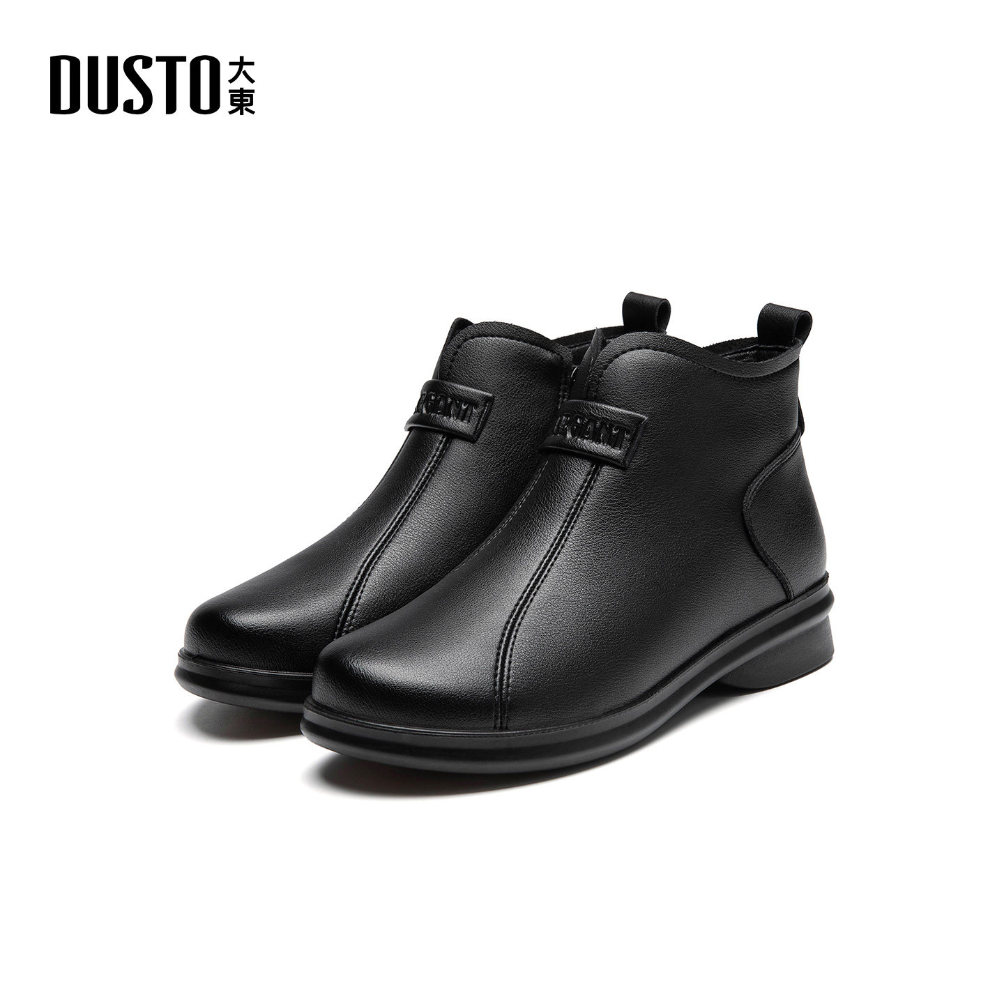 大东女鞋时装靴2025年冬季新款舒适粗跟中跟侧拉链圆头纯色短靴子