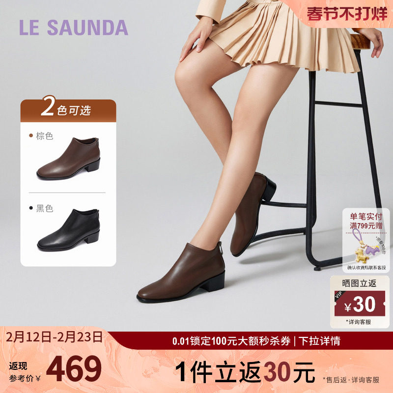 莱尔斯丹秋冬新款时尚优雅通勤粗跟圆头拉链纯色时装短靴女61704