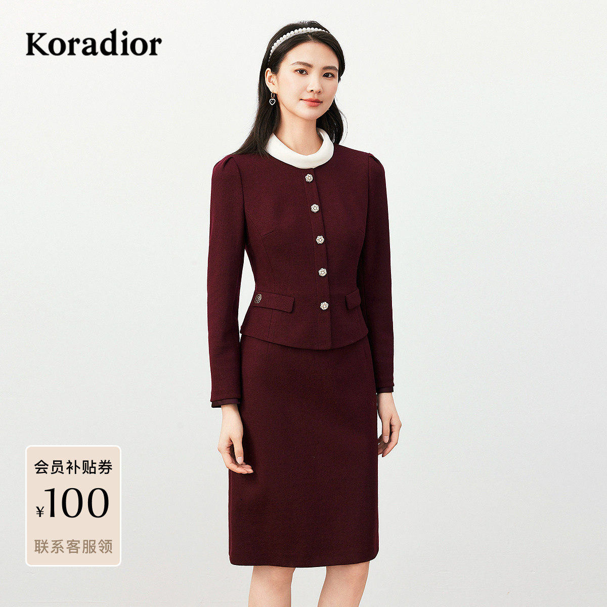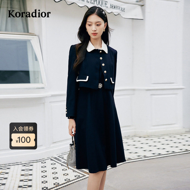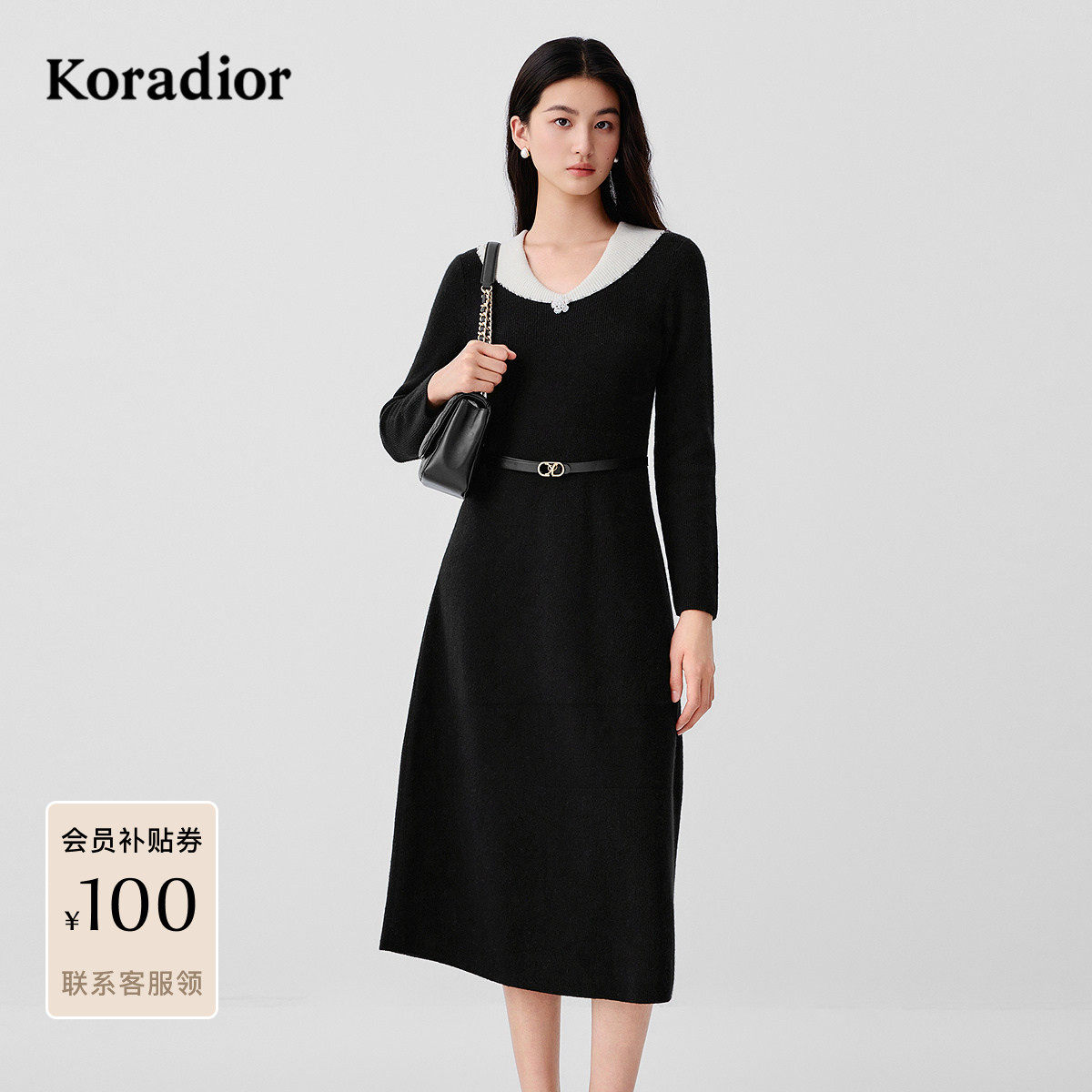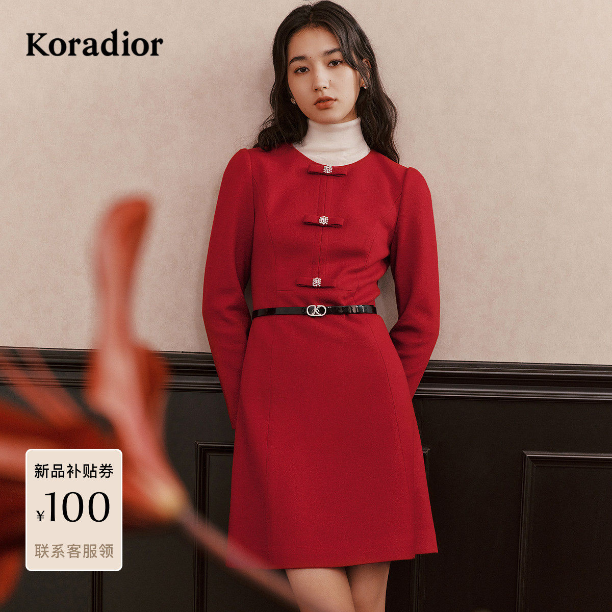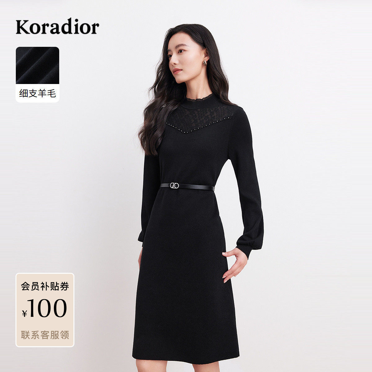 【美丽诺羊毛】Koradior珂莱蒂尔商场同款冬季精致香风羊毛连衣裙