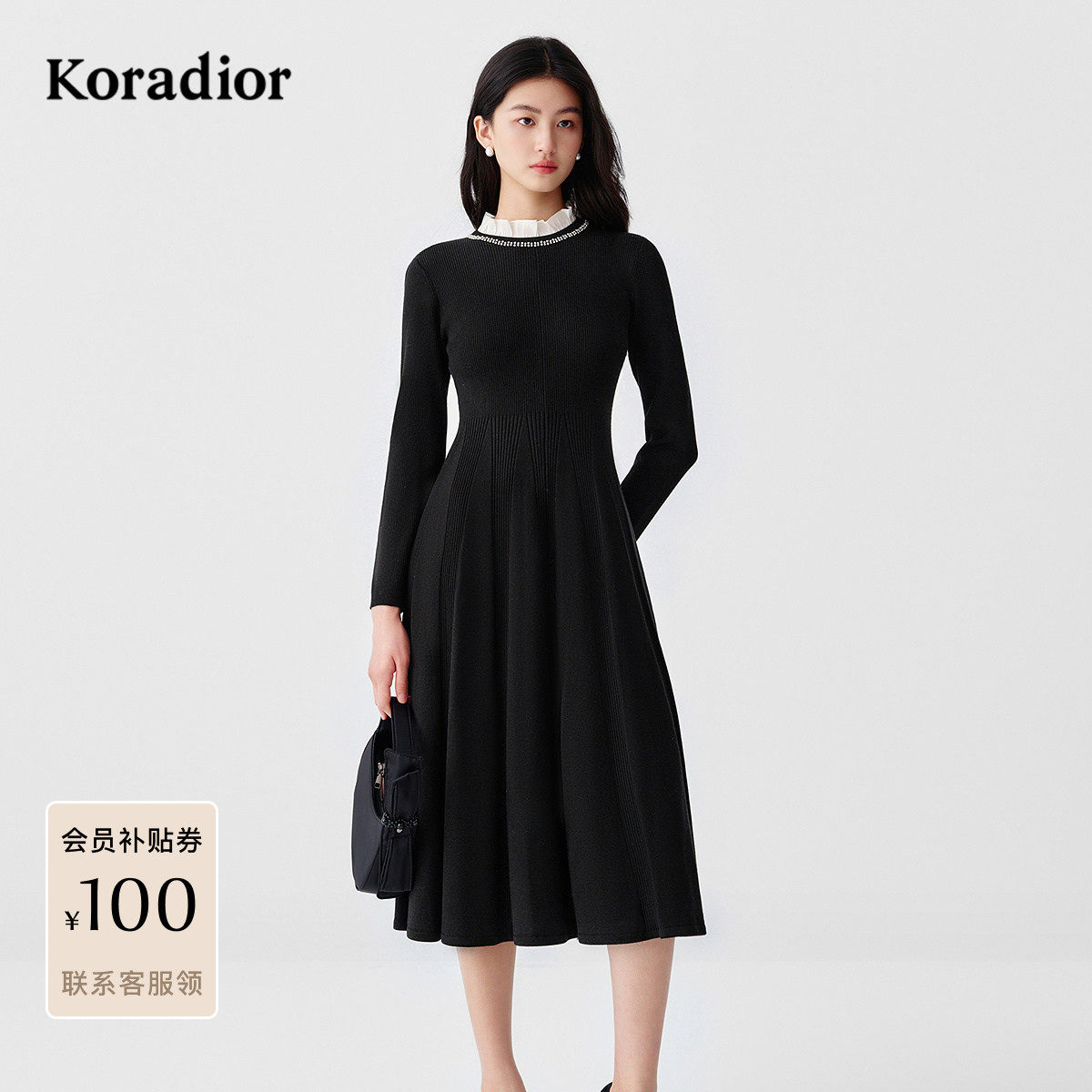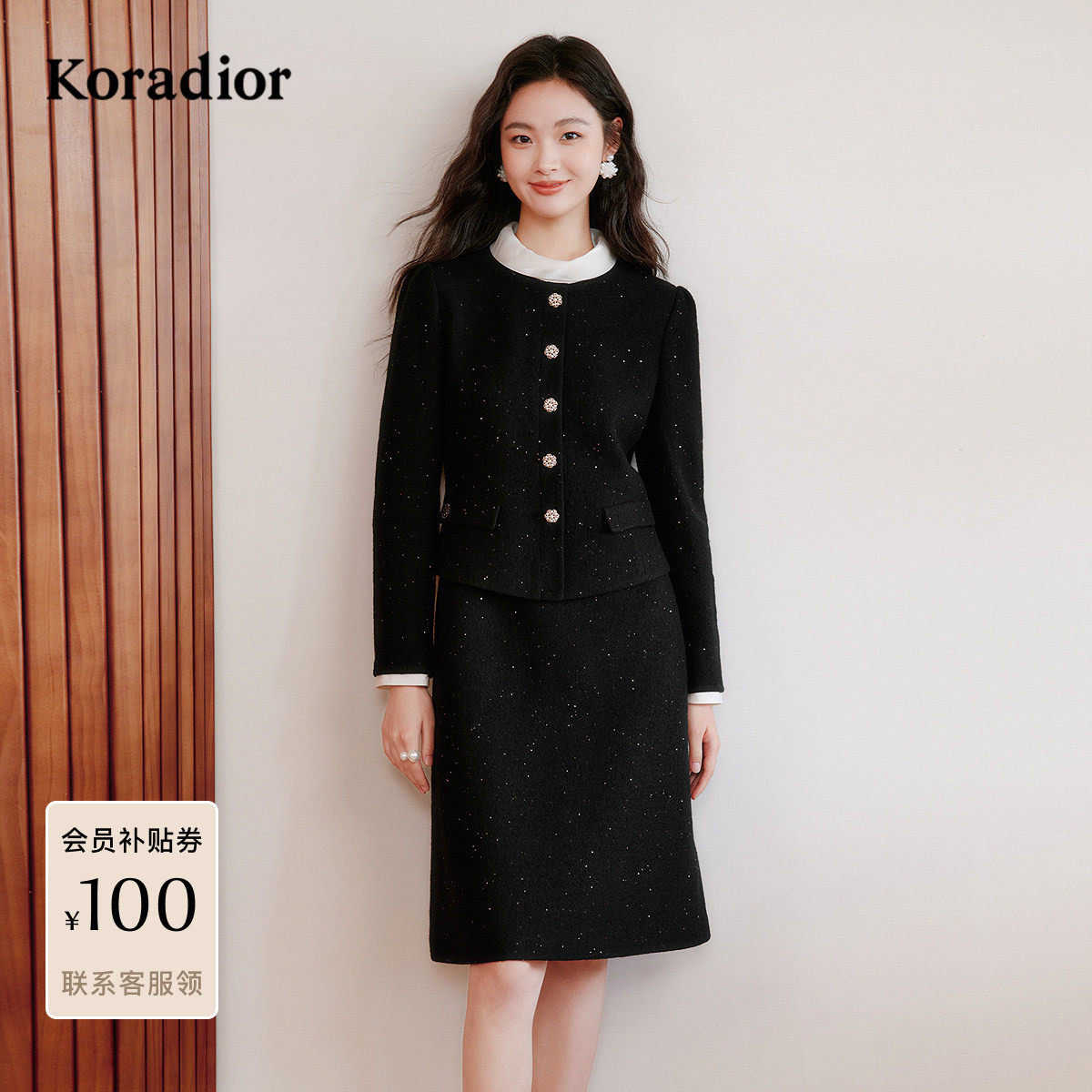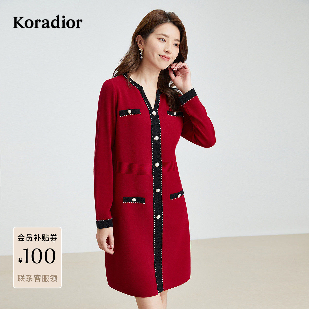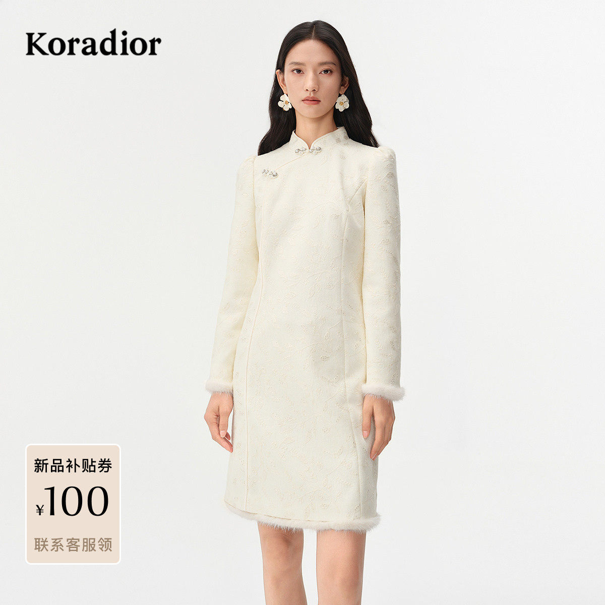 【美丽诺羊毛】Koradior珂莱蒂尔商场同款冬季精致香风羊毛连衣裙