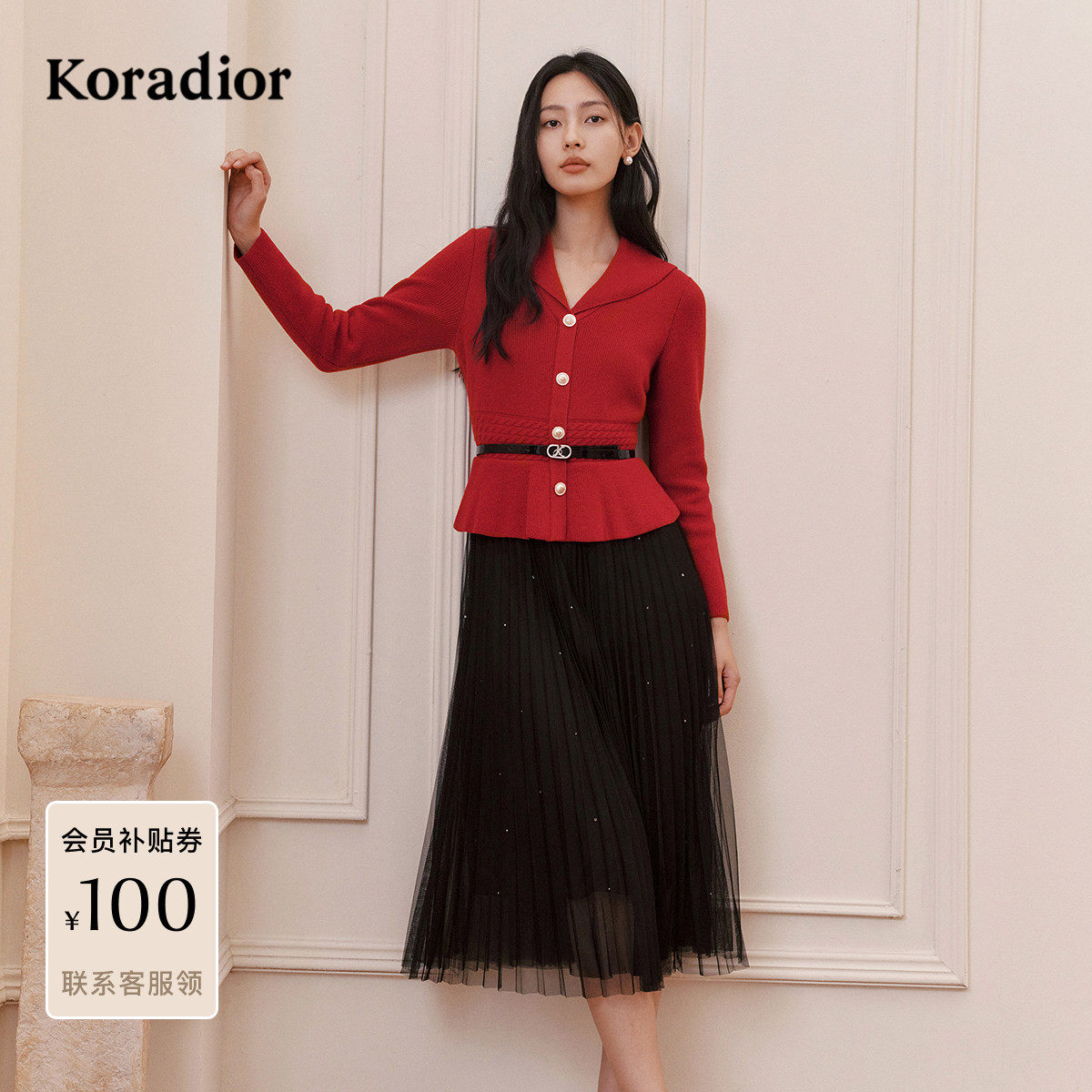 Koradior珂莱蒂尔商场同款冬气质精致复古羊毛背心连衣裙女