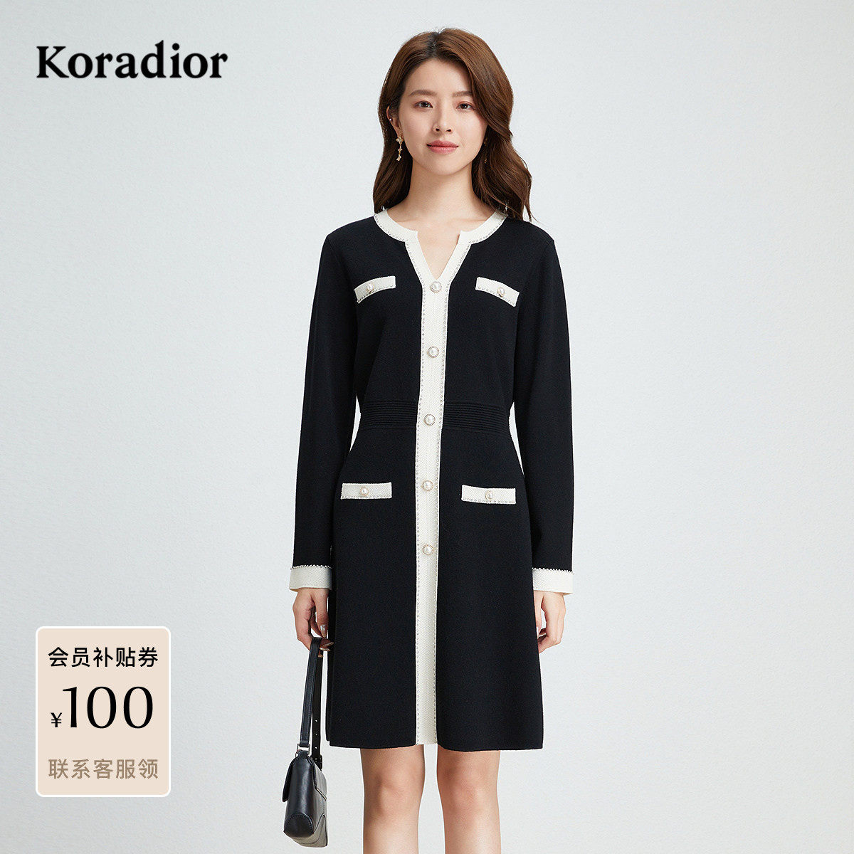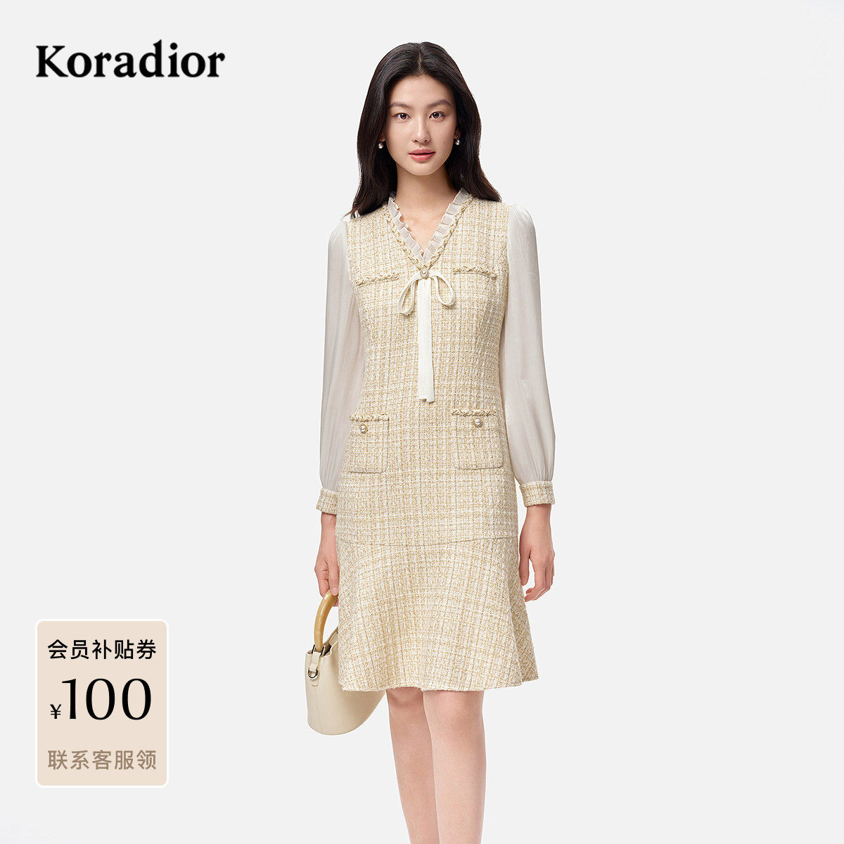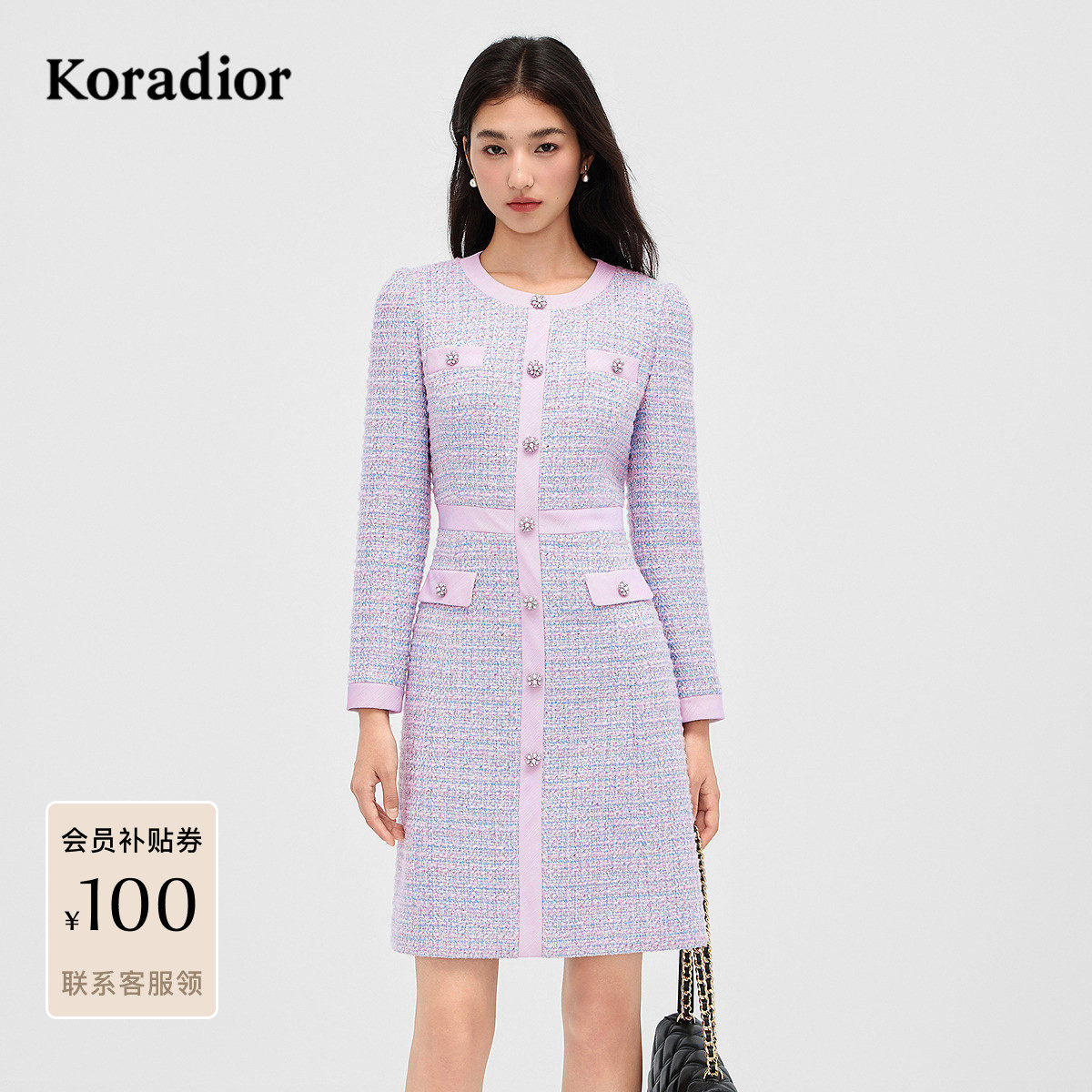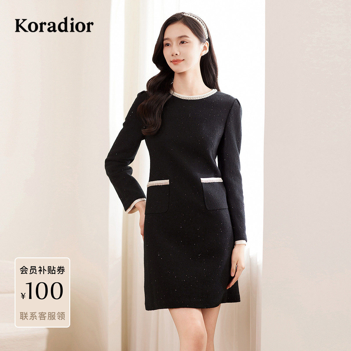 Koradior珂莱蒂尔商场同款绵羊毛秋气质精致香风连衣裙女