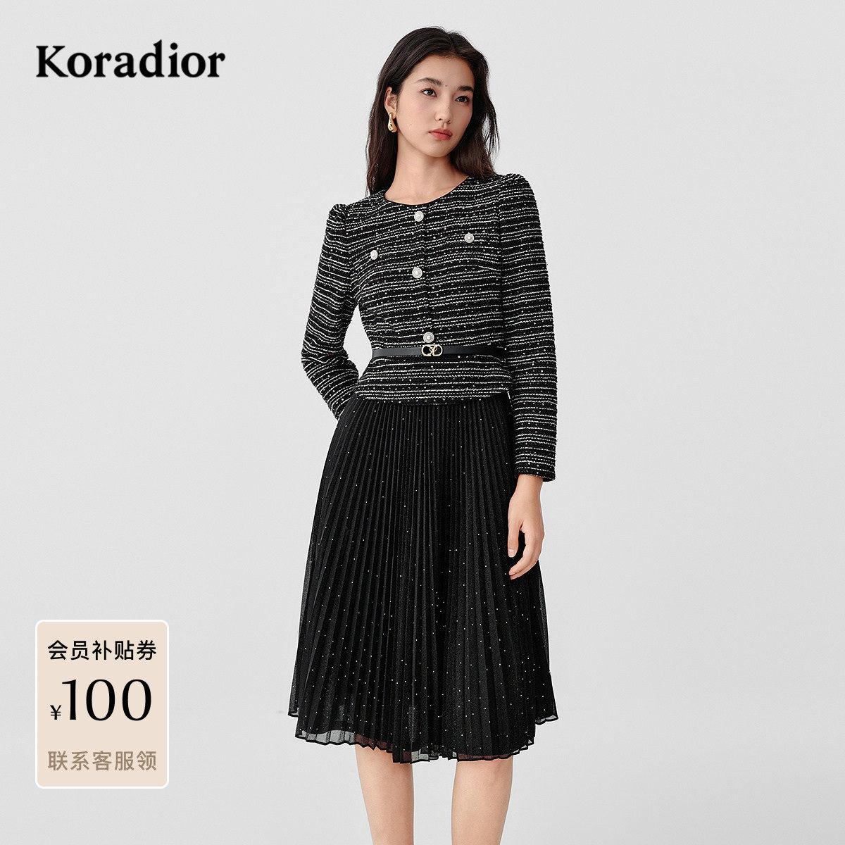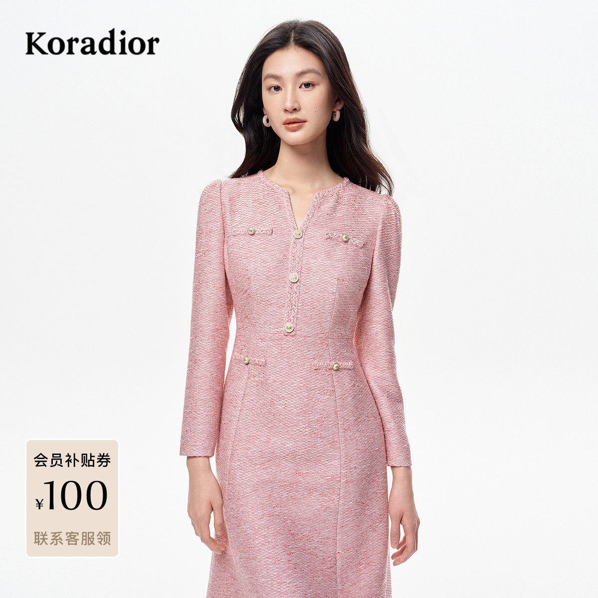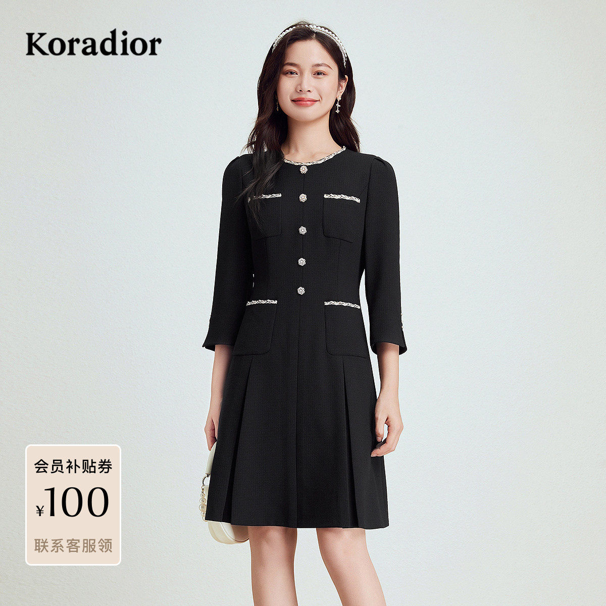 Koradior珂莱蒂尔商场同款绵羊毛秋气质精致香风连衣裙女