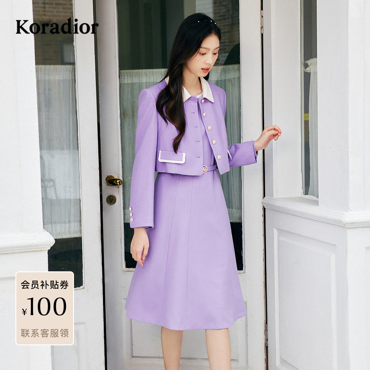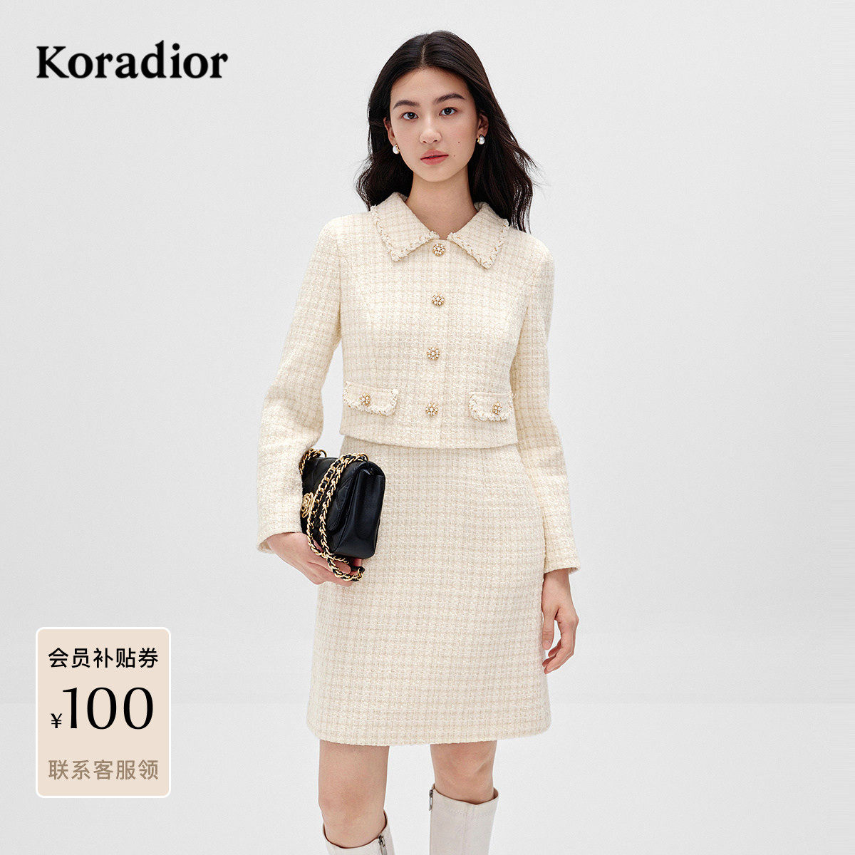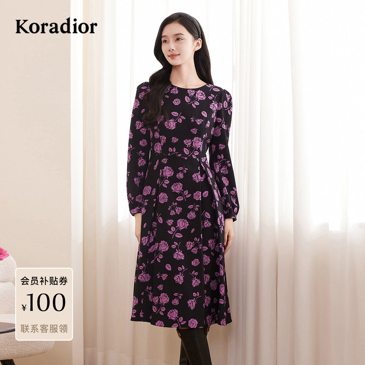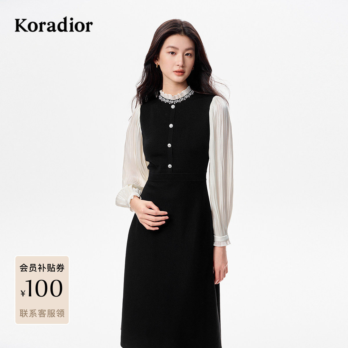 Koradior珂莱蒂尔商场同款绵羊毛秋气质精致香风连衣裙女