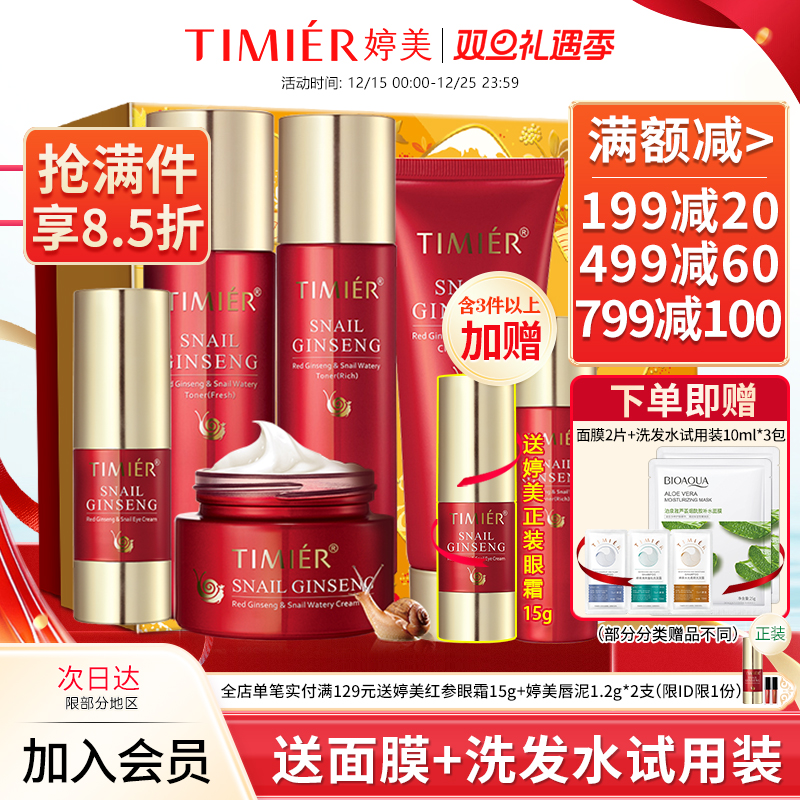 婷美红参蜗牛原液套装护肤品补水保湿爽肤水乳眼霜精华液化妆品女