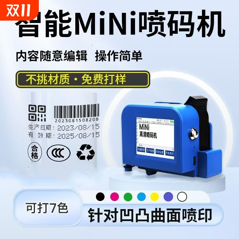 新款手持式智能Mini迷你喷码机 打码机打生产日期 全自动小型瓶盖塑料袋易拉罐底部凹凸曲面喷码机神器